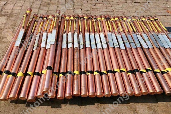 2、電解離子接地極管外壁噴涂一層高分子防腐導(dǎo)電材料,具有優(yōu)良防腐能力和極低的電阻率。極管上端和下端分別設(shè)計(jì)了水分吸收孔和離子釋放孔。
